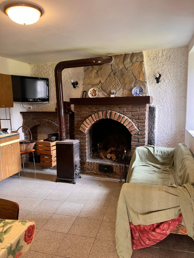 L'ingresso si apre sul soggiorno arricchito da camino a legna funzionante, affiancato da cucinotto separato. La scala interna conduce al piano superiore dedicato alla zona notte, dove troviamo una camera da letto matrimoniale e il bagno.