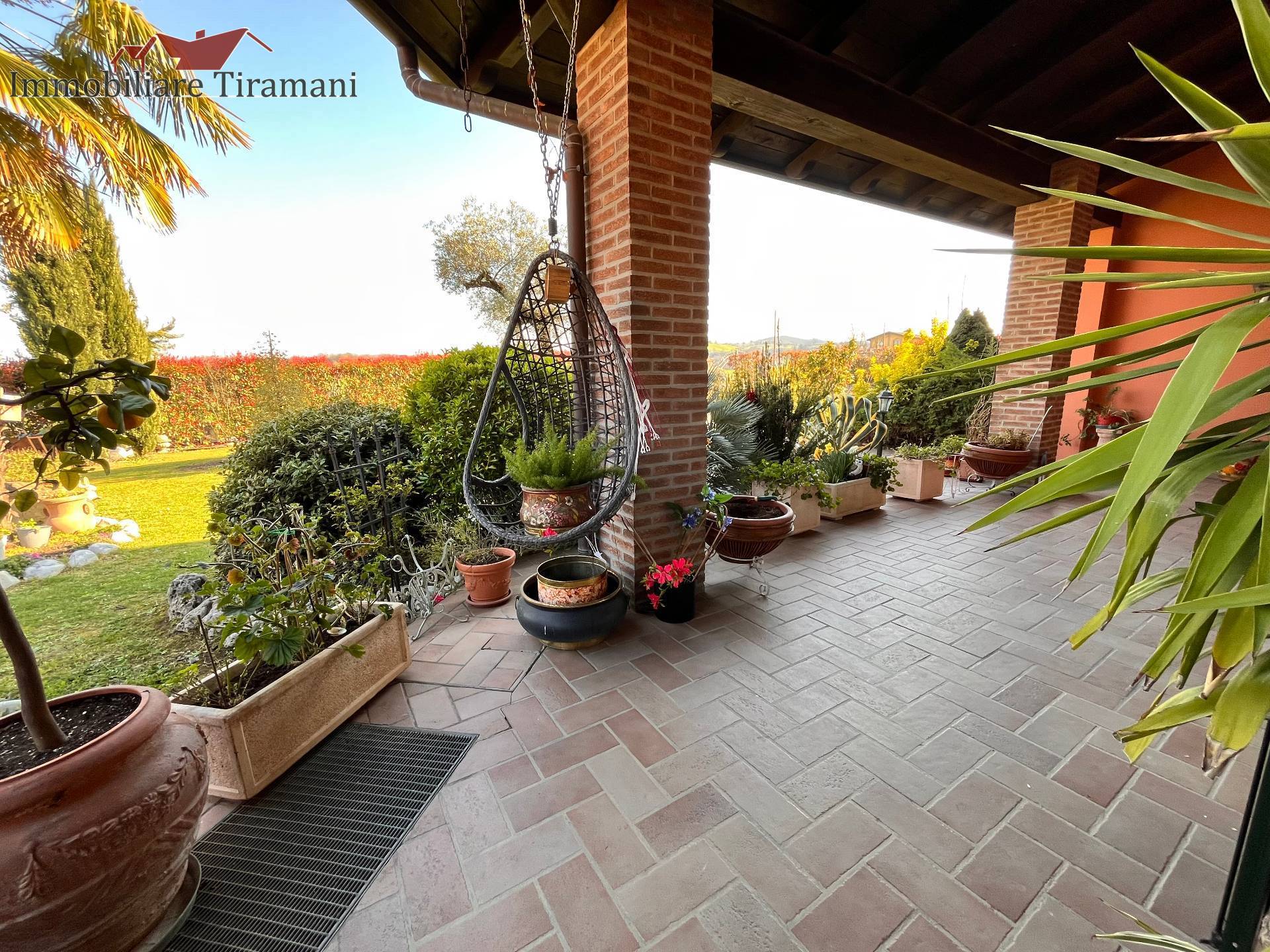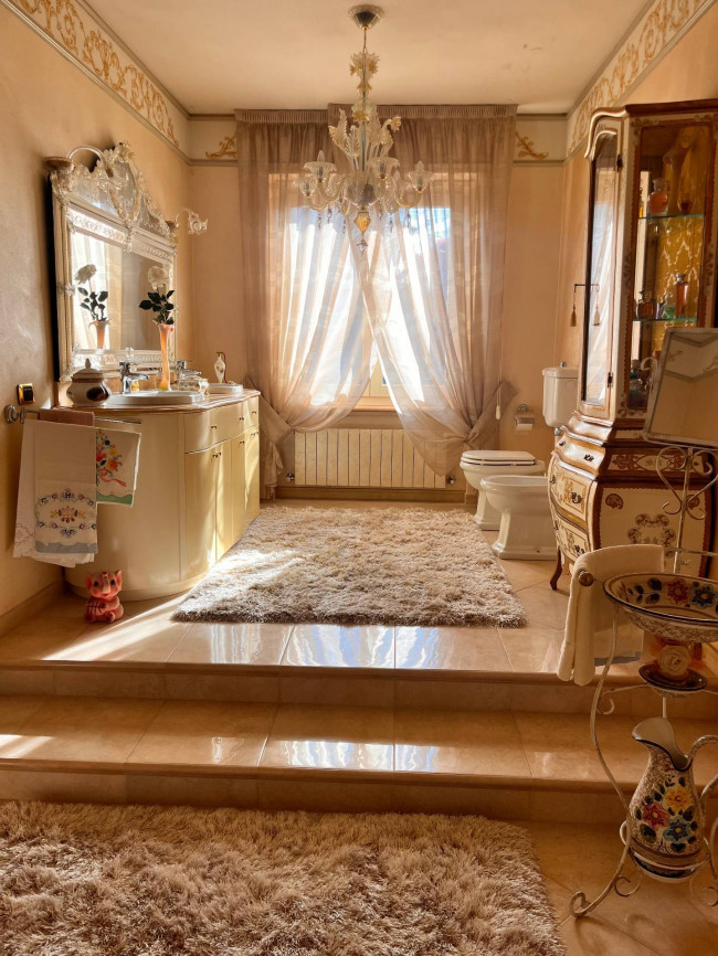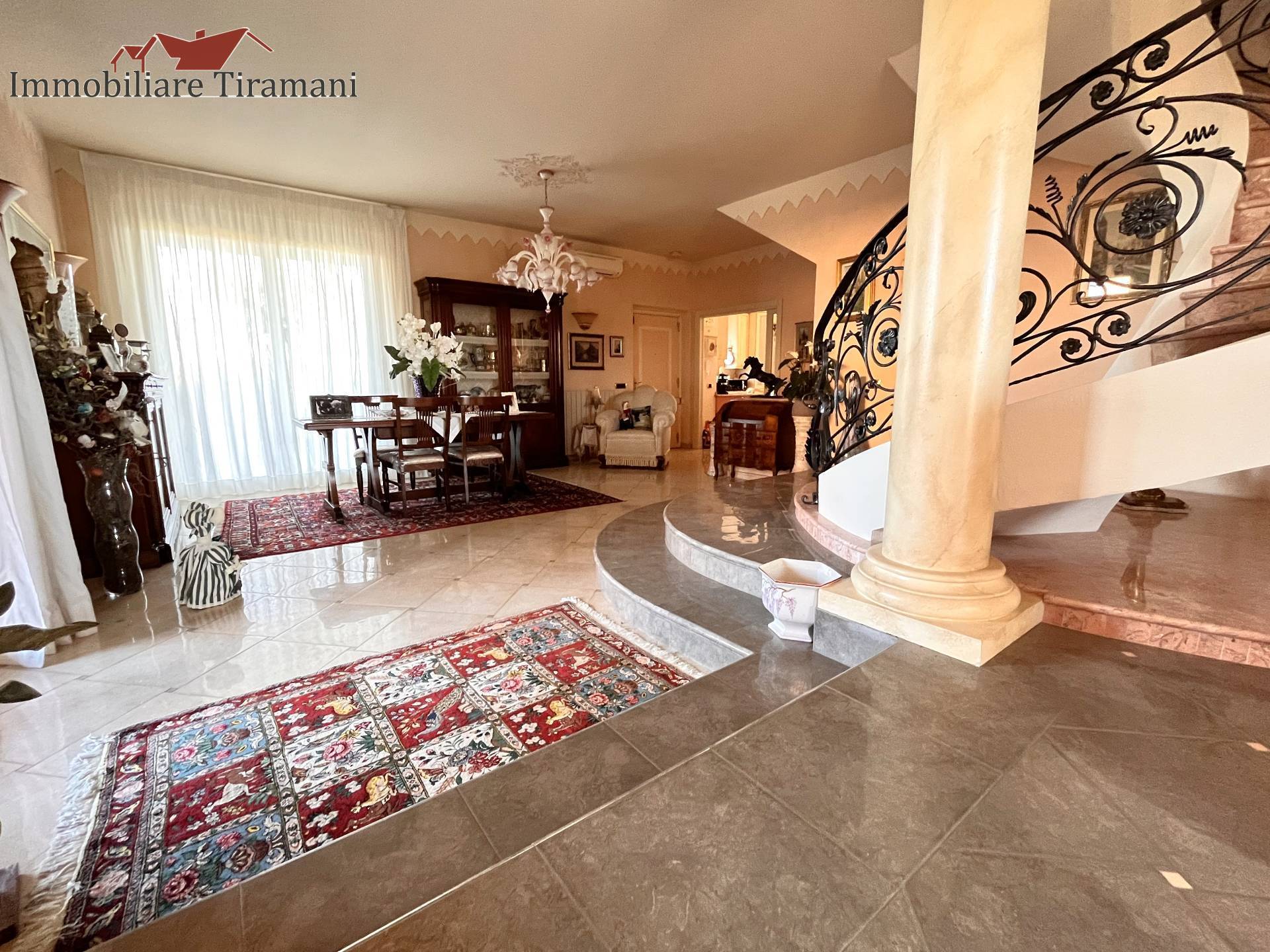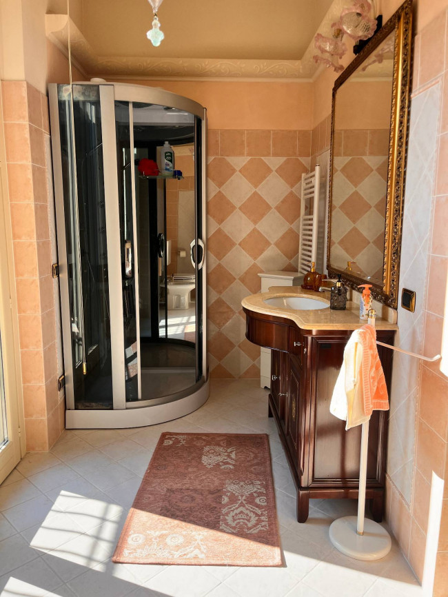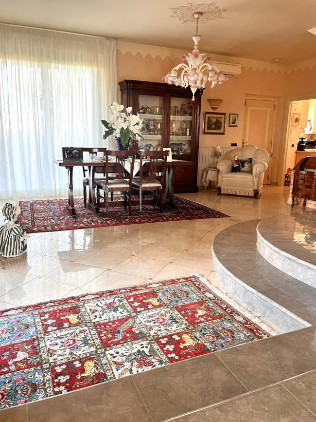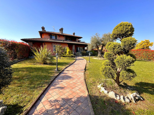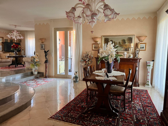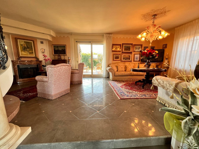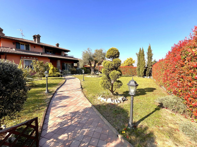 Circondata da uno splendido giardino completamente recintato e piantumato, tramite un portico accediamo alla parte abitativa con stanze luminose ed ampie. Ci accoglie un salone di circa 65 mq dove una splendida scala in ferro battuto ci accompagna al piano superiore. Sempre al piano terreno troviamo ampia cucina collegata ad un portico di 16 mq da sfruttare nella bella stagione come sala da pranzo, 2 camere da letto di cui una con bagno privato ed una sala da bagno di 16 mq. Al piano superiore 2 camere da letto matrimoniali, bagno, ripostiglio/cabina armadio ed ampi balconi e logge da cui godersi il panorama. Al piano seminterrato 2 autorimesse ( mq. 21 e 61) ampie cantine, lavanderia e stireria. Finiture di pregio.