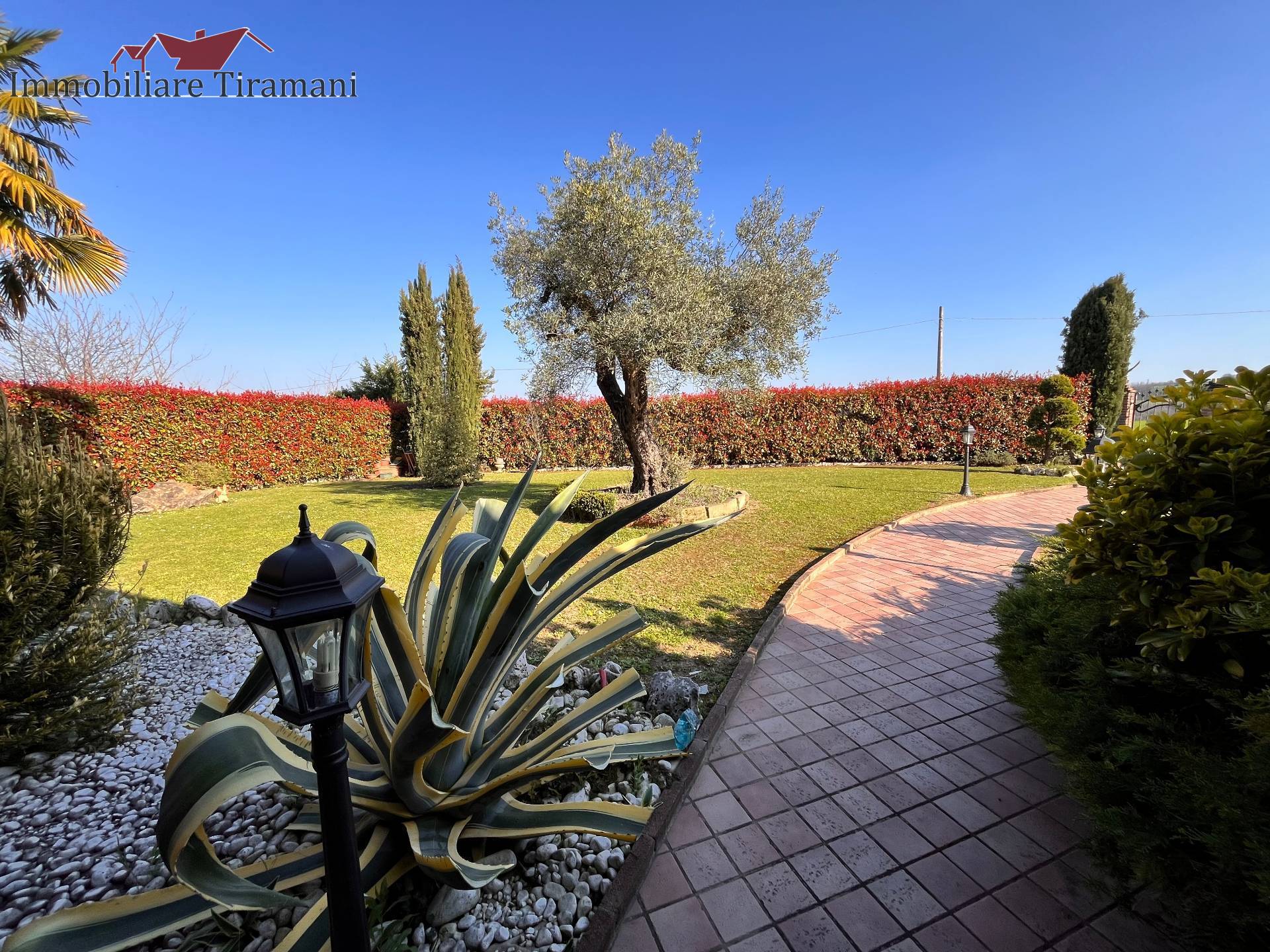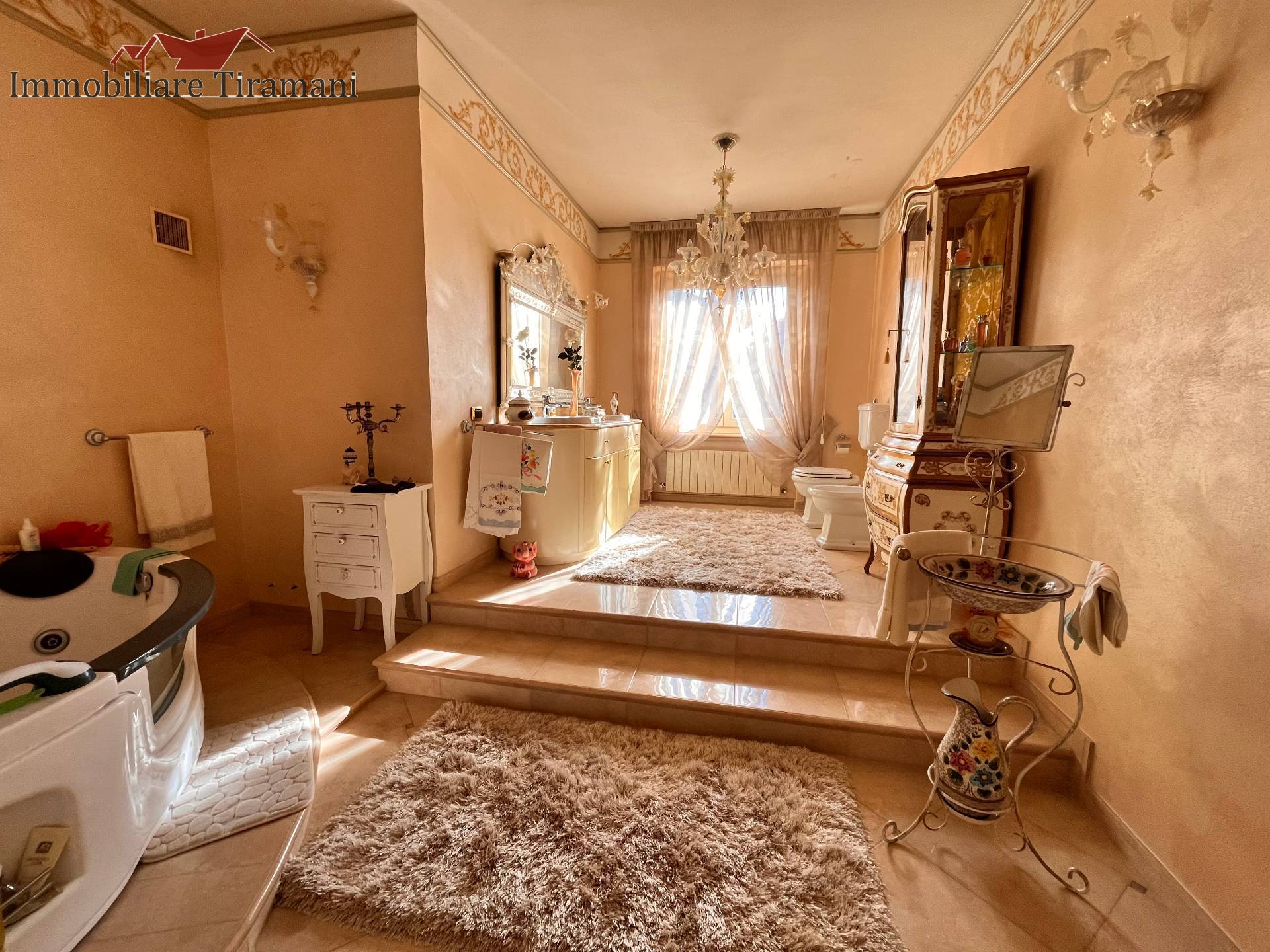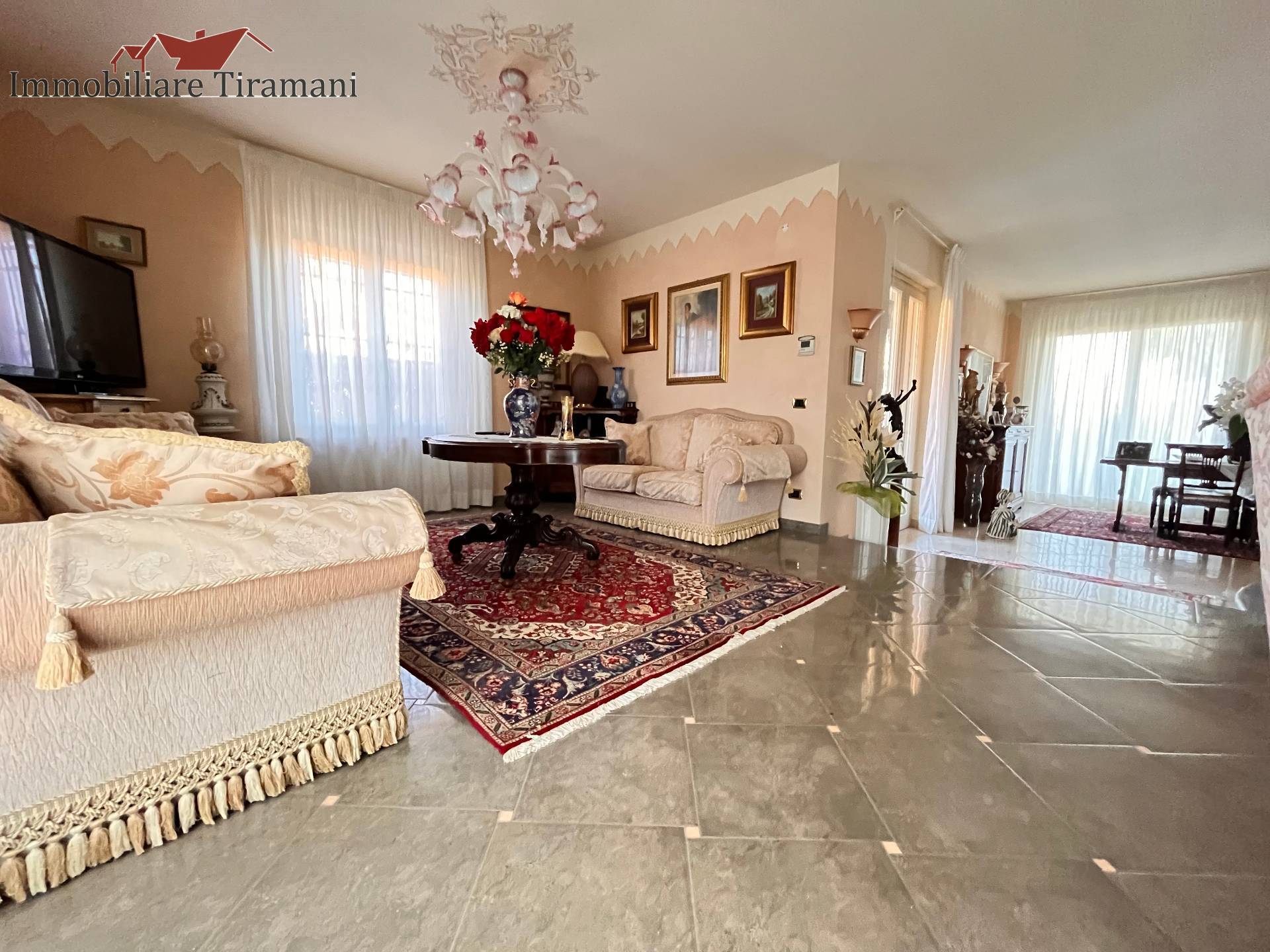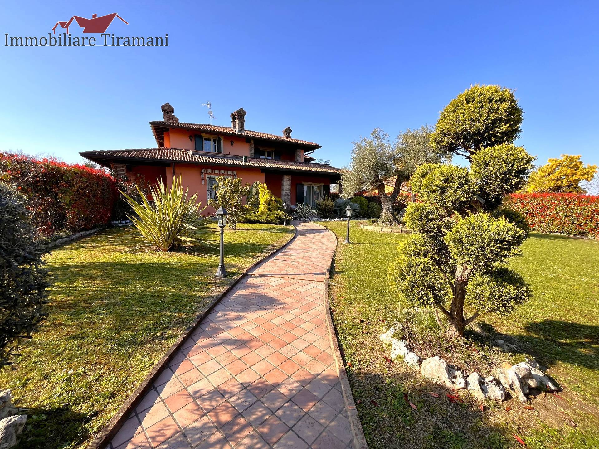 Circondata da uno splendido giardino completamente recintato e piantumato, tramite un portico accediamo alla parte abitativa con stanze luminose ed ampie. Ci accoglie un salone di circa 65 mq dove una splendida scala in ferro battuto ci accompagna al piano superiore. Sempre al piano terreno troviamo ampia cucina collegata ad un portico di 16 mq da sfruttare nella bella stagione come sala da pranzo, 2 camere da letto di cui una con bagno privato ed una sala da bagno di 16 mq. Al piano superiore 2 camere da letto matrimoniali, bagno, ripostiglio/cabina armadio ed ampi balconi e logge da cui godersi il panorama. Al piano seminterrato 2 autorimesse ( mq. 21 e 61) ampie cantine, lavanderia e stireria. Finiture di pregio.