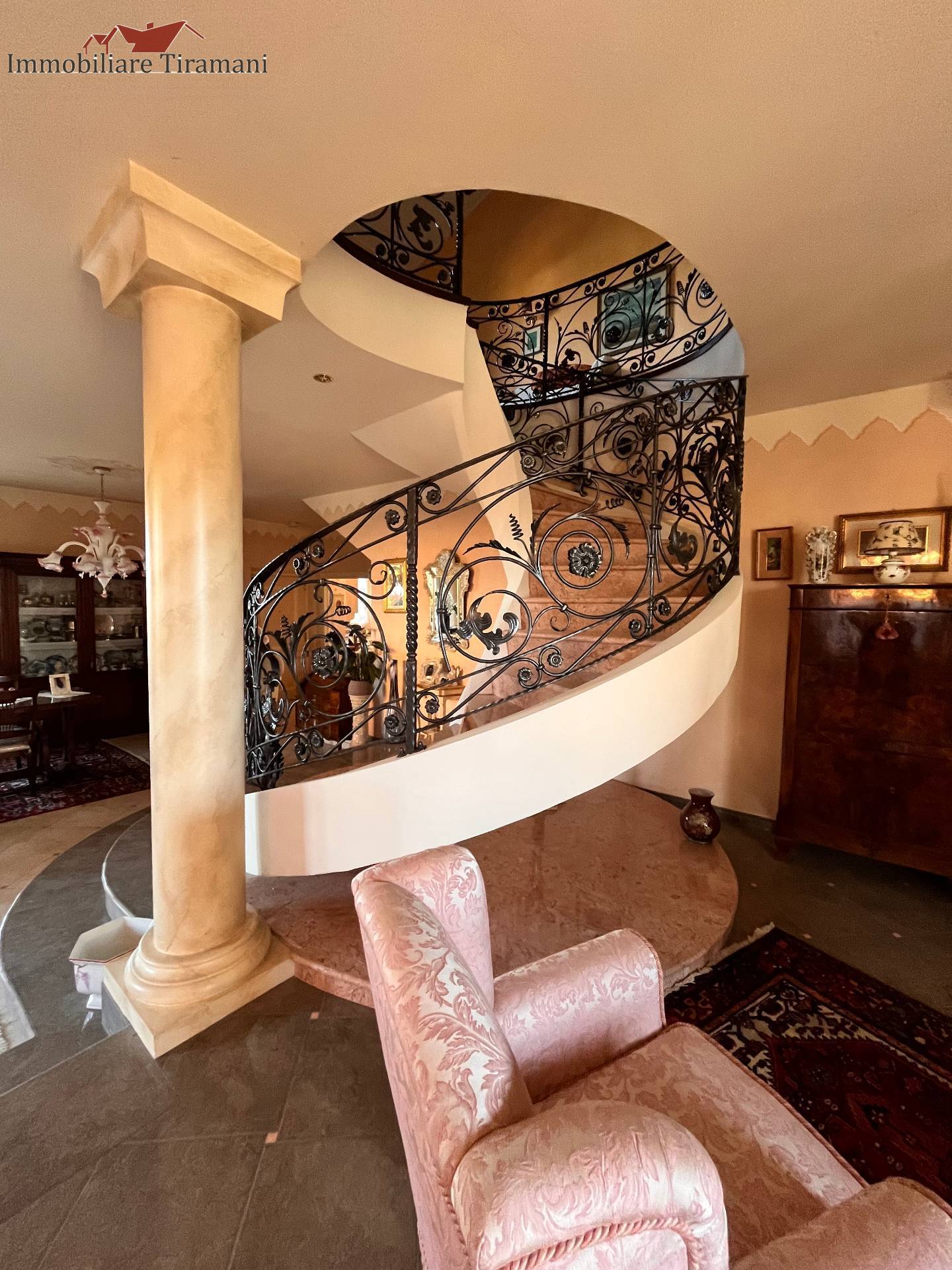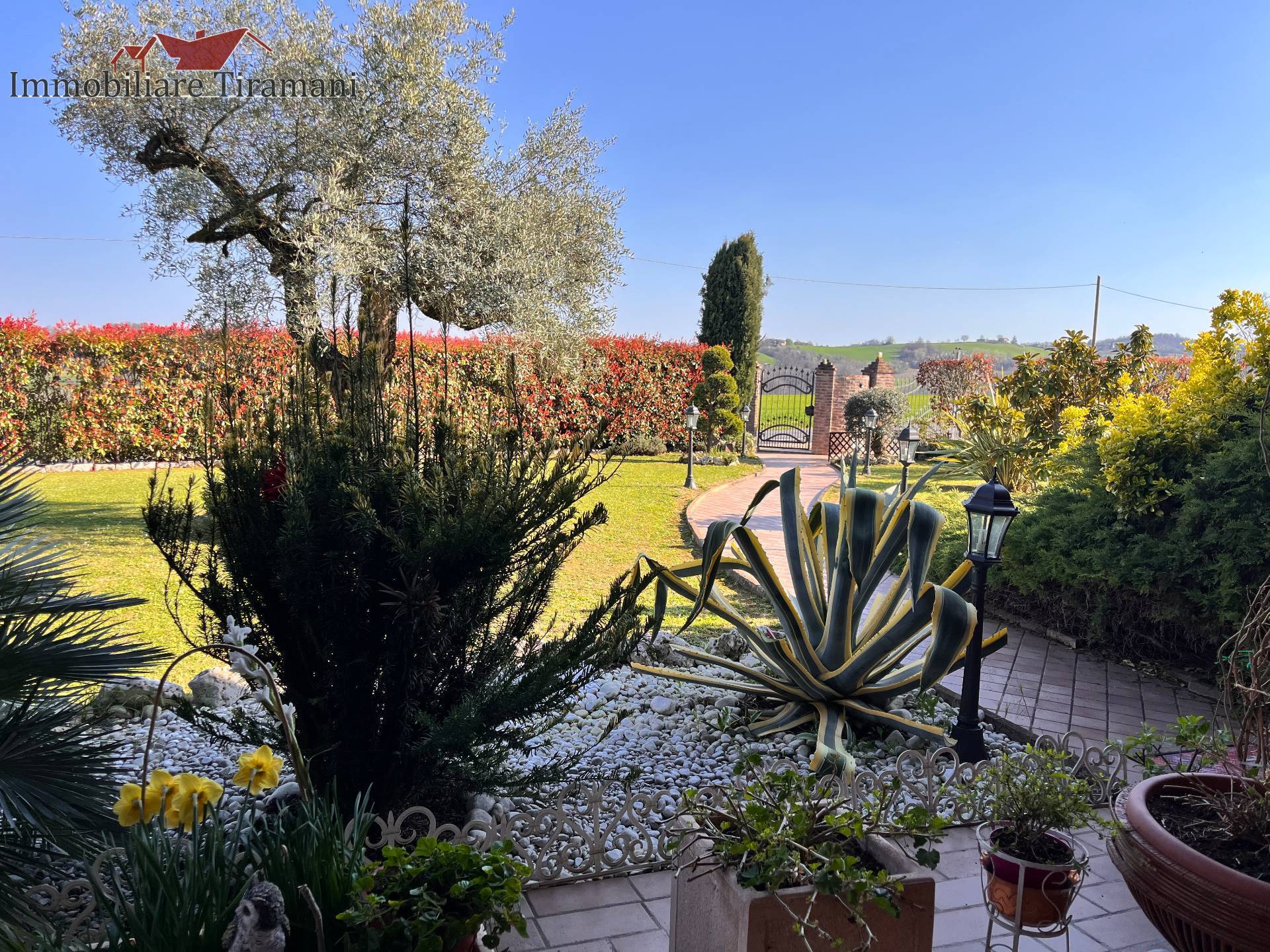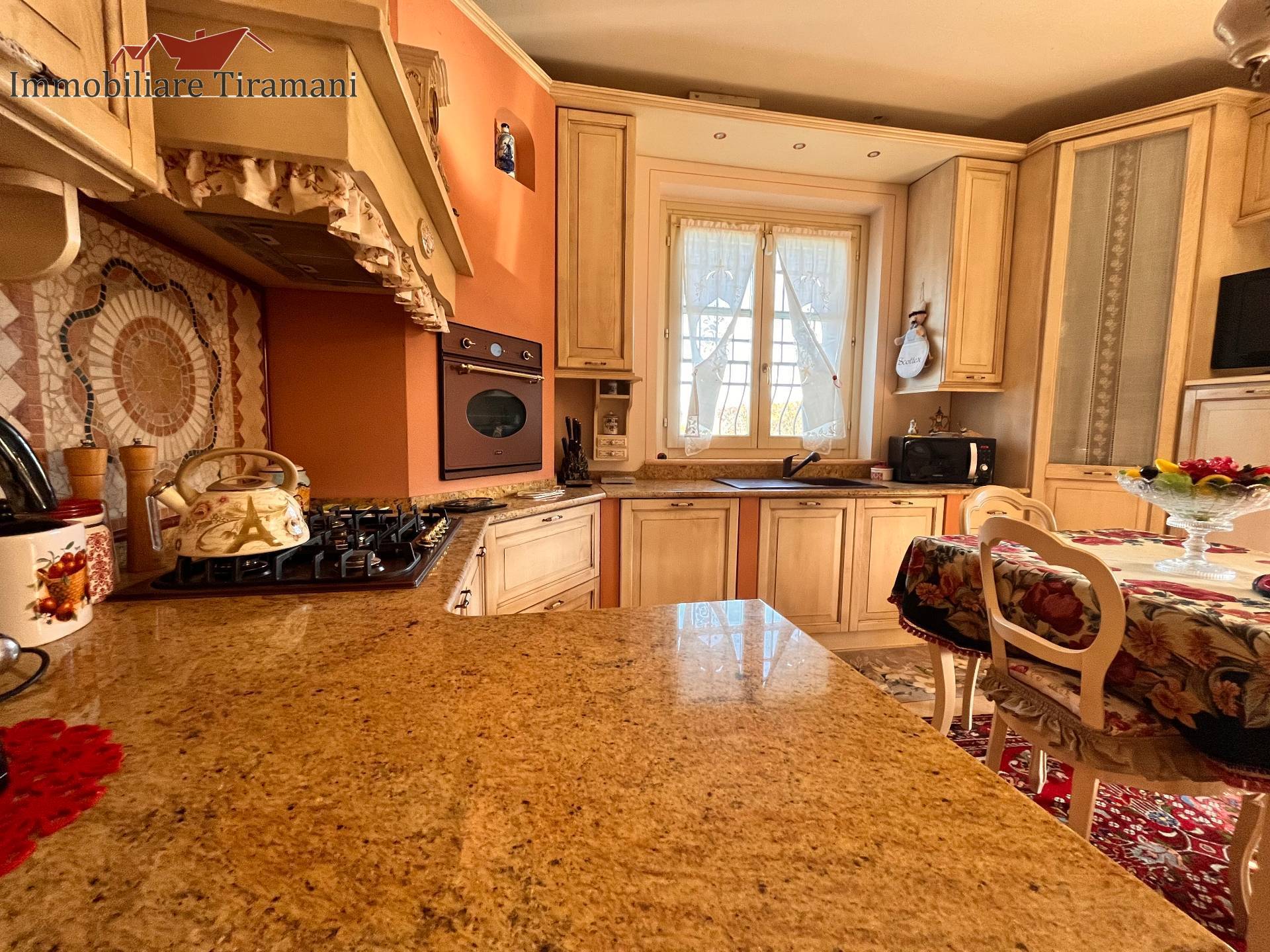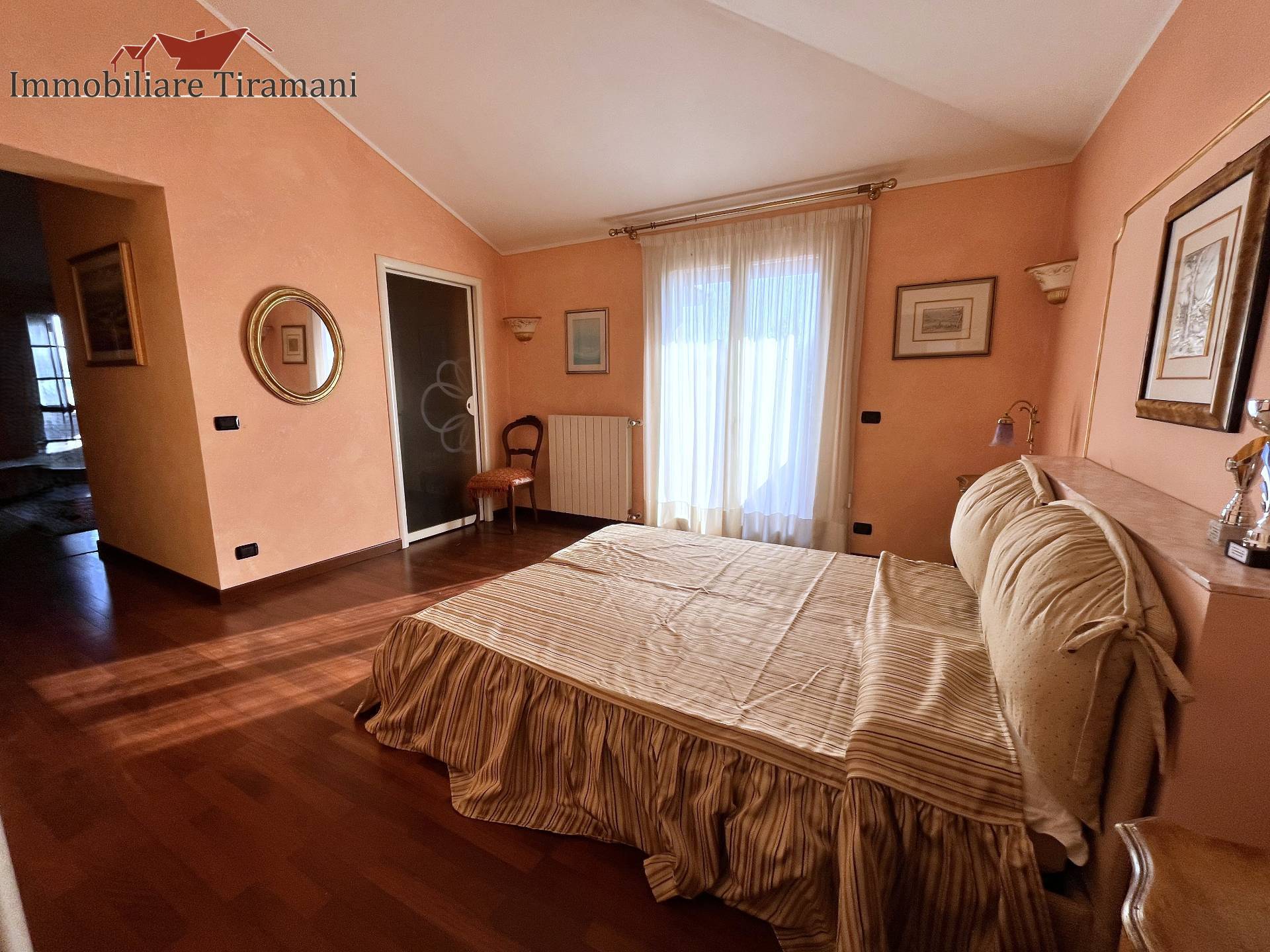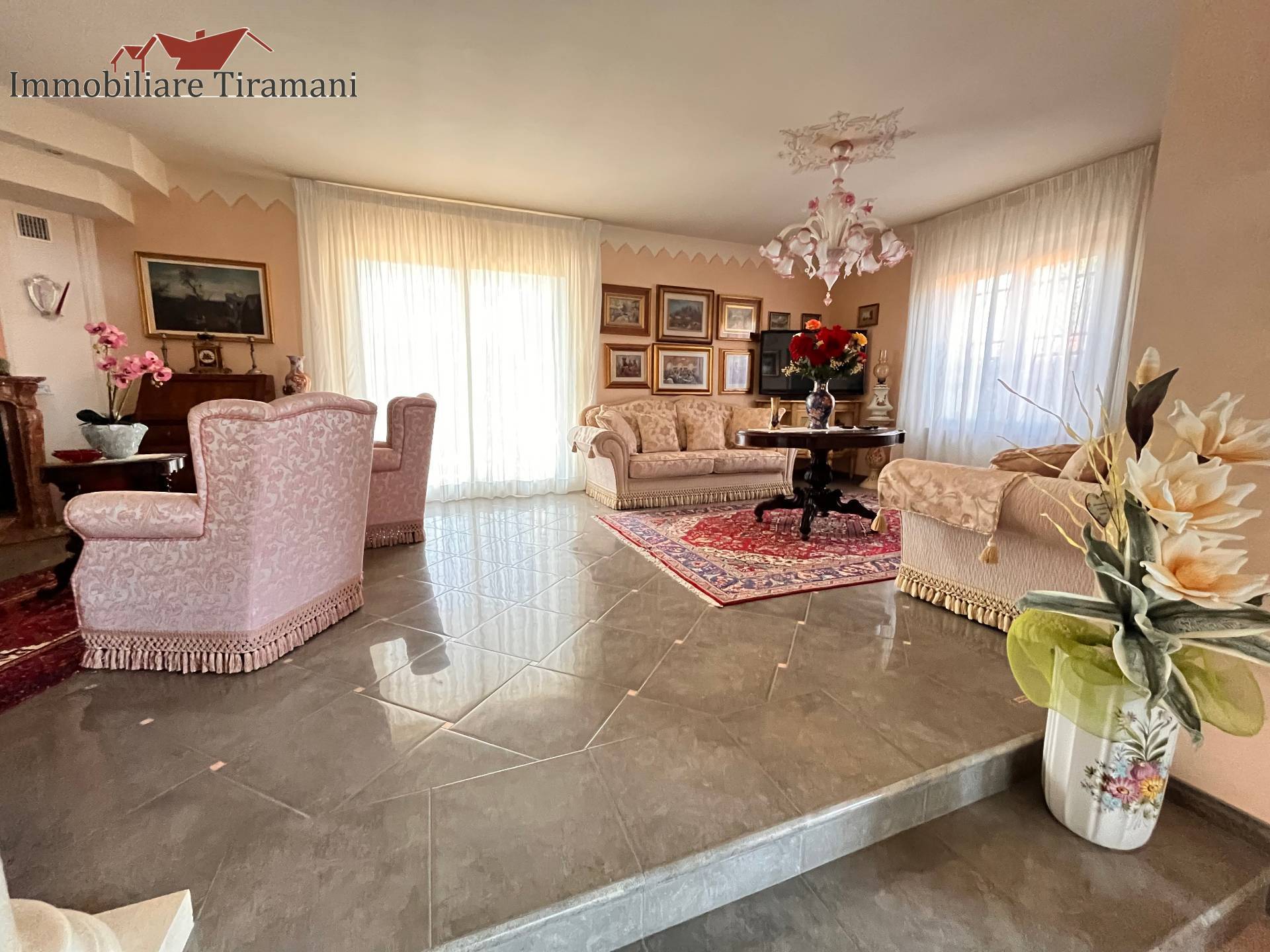 Circondata da uno splendido giardino completamente recintato e piantumato, tramite un portico accediamo alla parte abitativa con stanze luminose ed ampie. Ci accoglie un salone di circa 65 mq dove una splendida scala in ferro battuto ci accompagna al piano superiore. Sempre al piano terreno troviamo ampia cucina collegata ad un portico di 16 mq da sfruttare nella bella stagione come sala da pranzo, 2 camere da letto di cui una con bagno privato ed una sala da bagno di 16 mq. Al piano superiore 2 camere da letto matrimoniali, bagno, ripostiglio/cabina armadio ed ampi balconi e logge da cui godersi il panorama. Al piano seminterrato 2 autorimesse ( mq. 21 e 61) ampie cantine, lavanderia e stireria. Finiture di pregio.