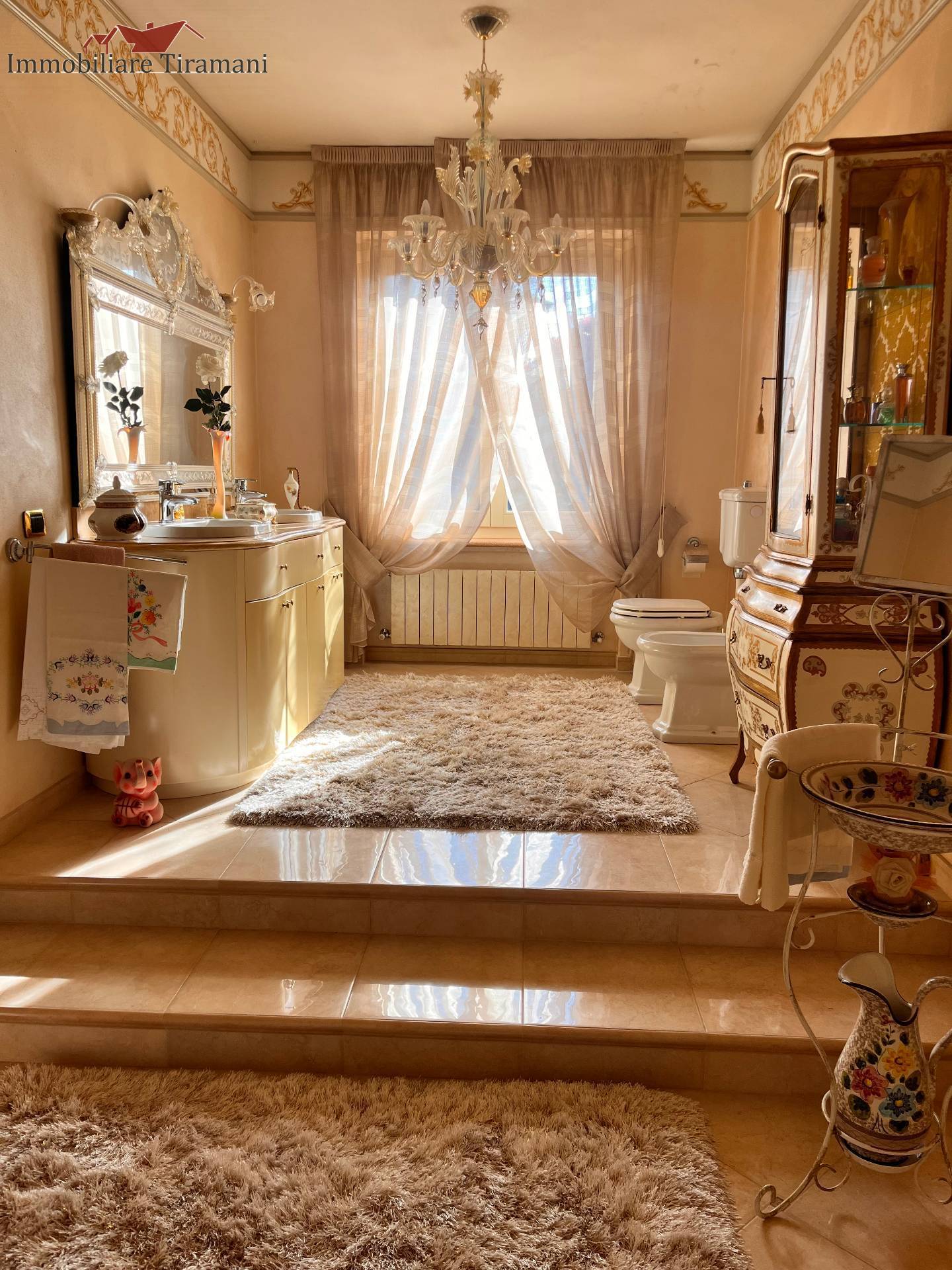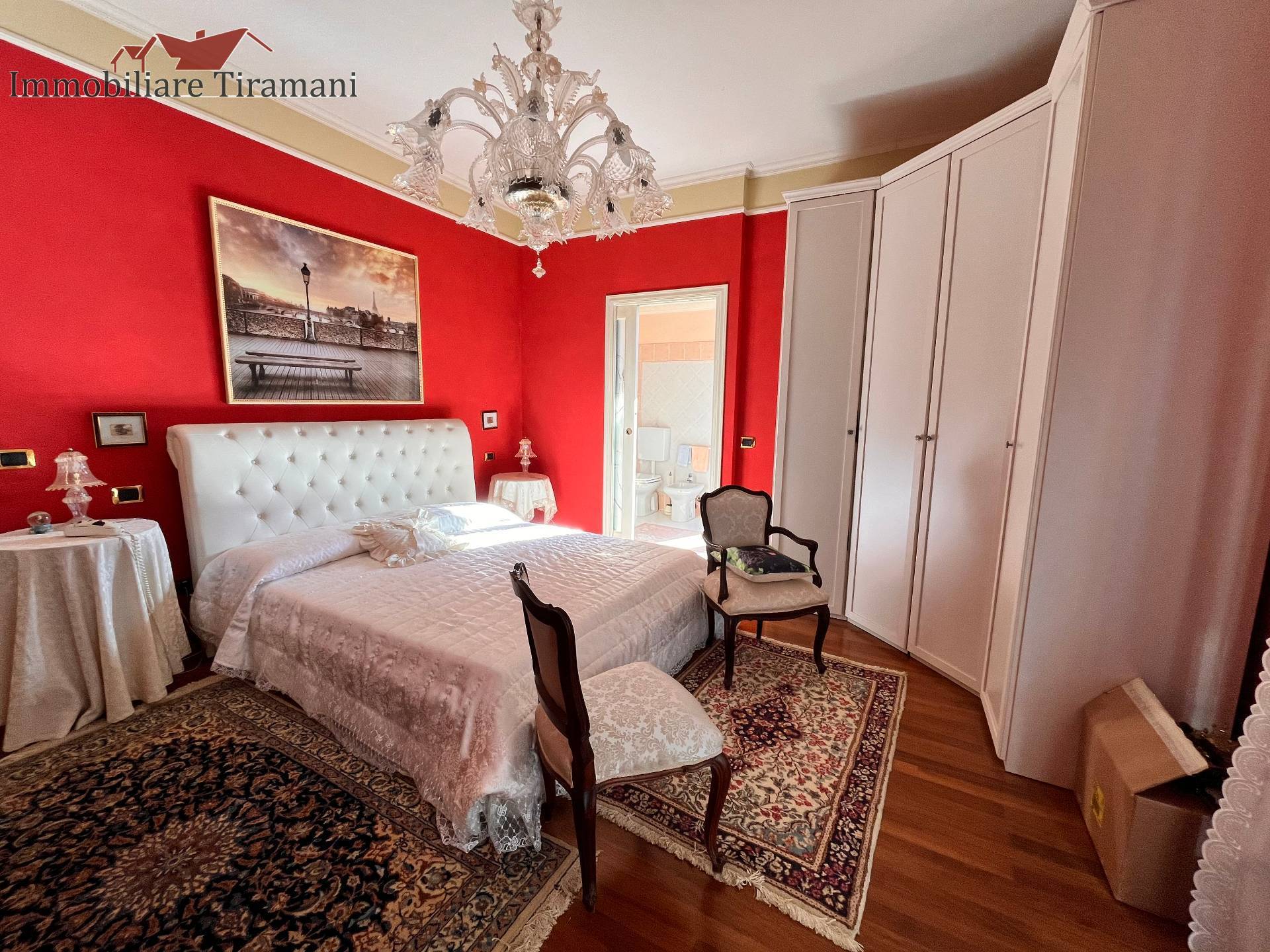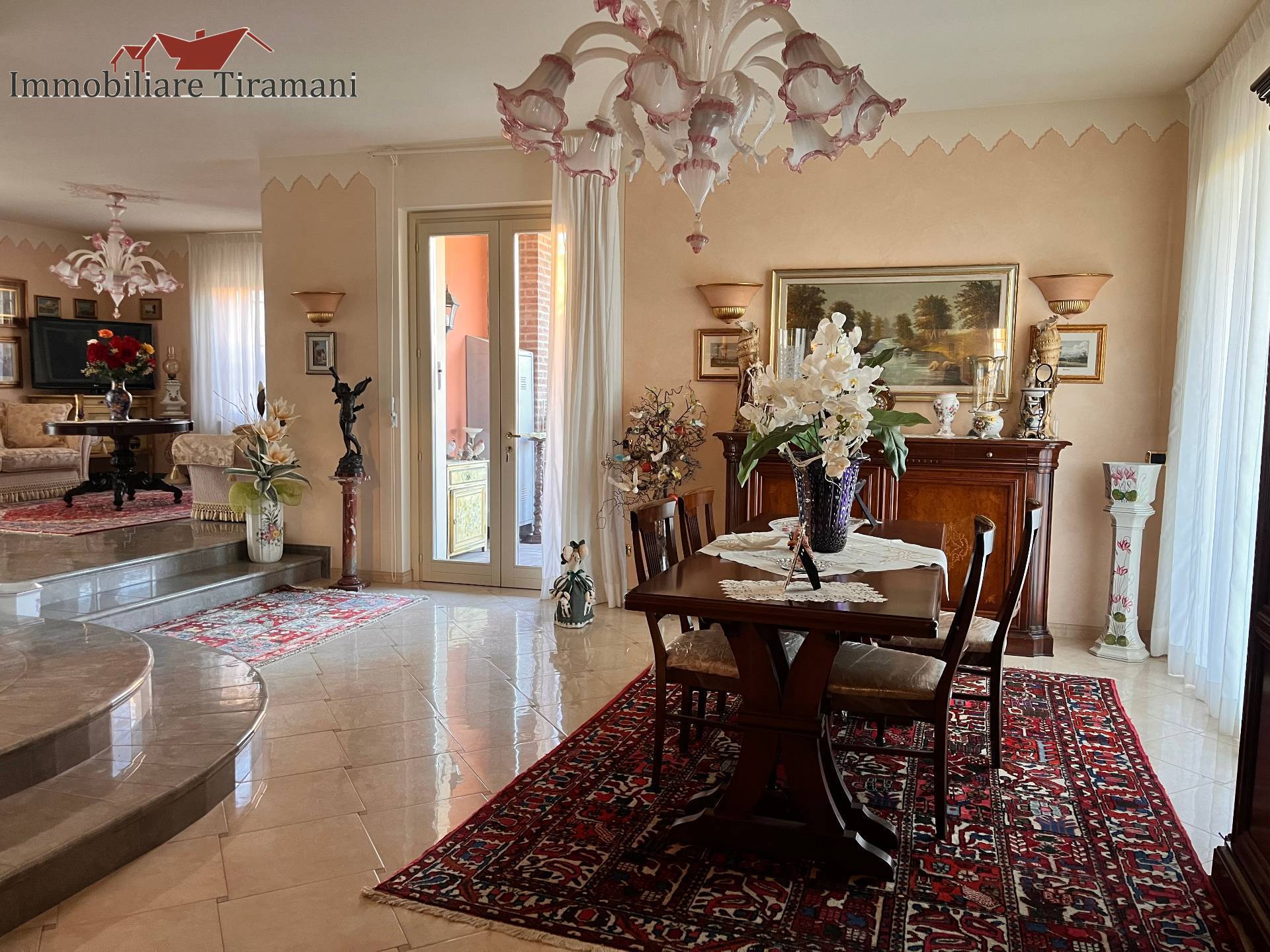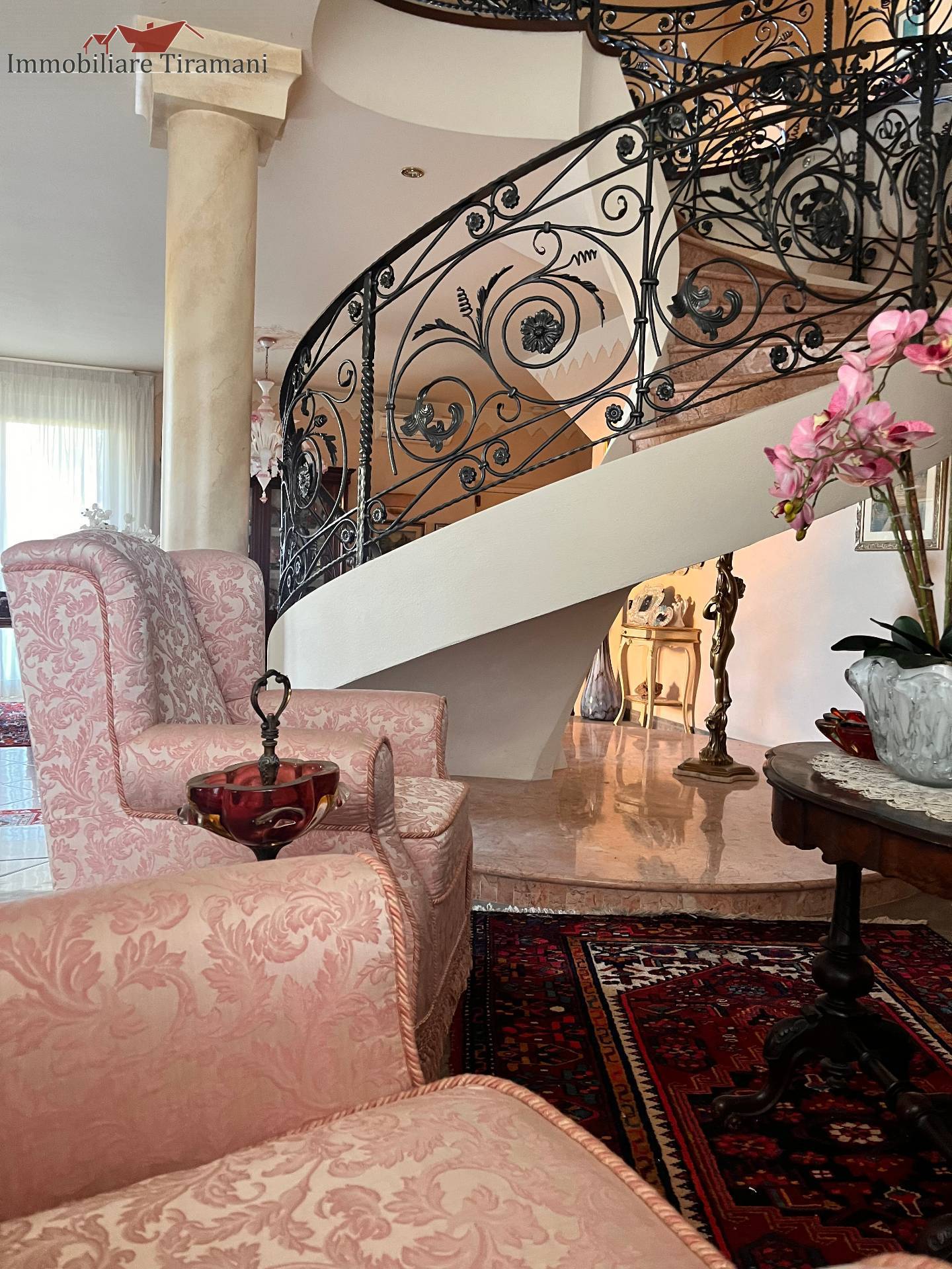 Circondata da uno splendido giardino completamente recintato e piantumato, tramite un portico accediamo alla parte abitativa con stanze luminose ed ampie. Ci accoglie un salone di circa 65 mq dove una splendida scala in ferro battuto ci accompagna al piano superiore. Sempre al piano terreno troviamo ampia cucina collegata ad un portico di 16 mq da sfruttare nella bella stagione come sala da pranzo, 2 camere da letto di cui una con bagno privato ed una sala da bagno di 16 mq. Al piano superiore 2 camere da letto matrimoniali, bagno, ripostiglio/cabina armadio ed ampi balconi e logge da cui godersi il panorama. Al piano seminterrato 2 autorimesse ( mq. 21 e 61) ampie cantine, lavanderia e stireria. Finiture di pregio.